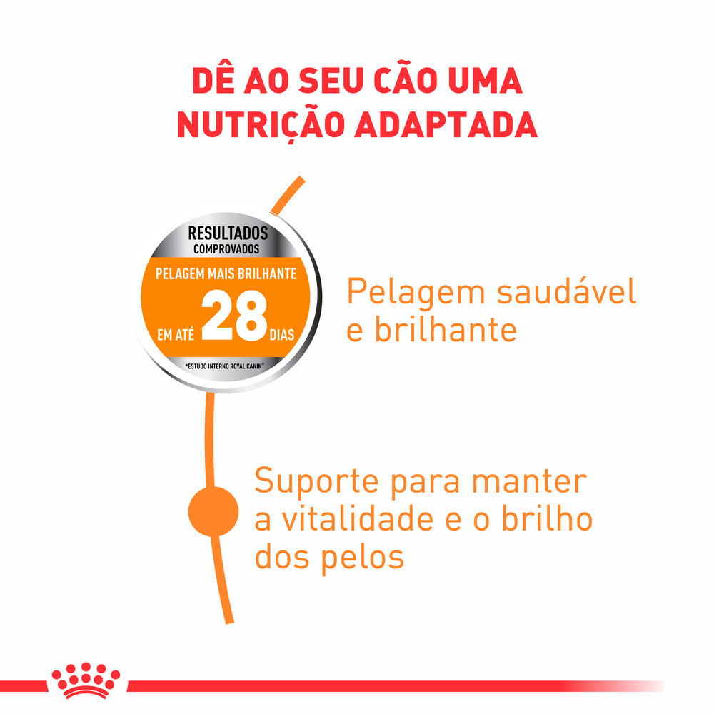 – Indicado para cães adultos;- Pelagem mais brilhante em 28 dias;- Mantém a pele saudável e apoiar o crescimento adequado da pelagem;- Intensifica a beleza da cor da pelagem;- Mantem a vitalidade e o brilho dos pelos;- Disponível em embalagem de 2,5 kg.