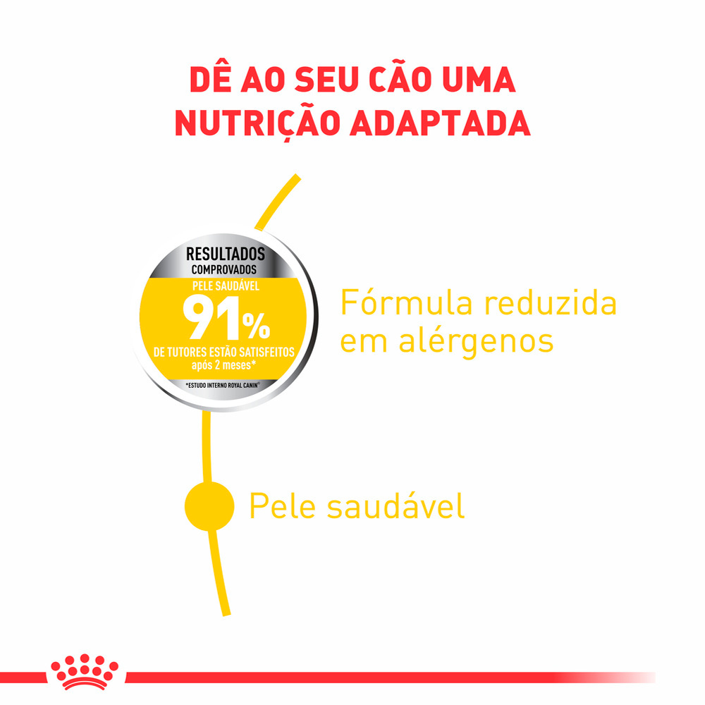 – Indicada para cães adultos;- 91% dos tutores estão satisfeitos após 2 meses;- Ajuda a nutrir a pele sensível;- Mantém a pelagem saudável;- Disponível em embalagens de 2,5 kg e 10,1 kg.