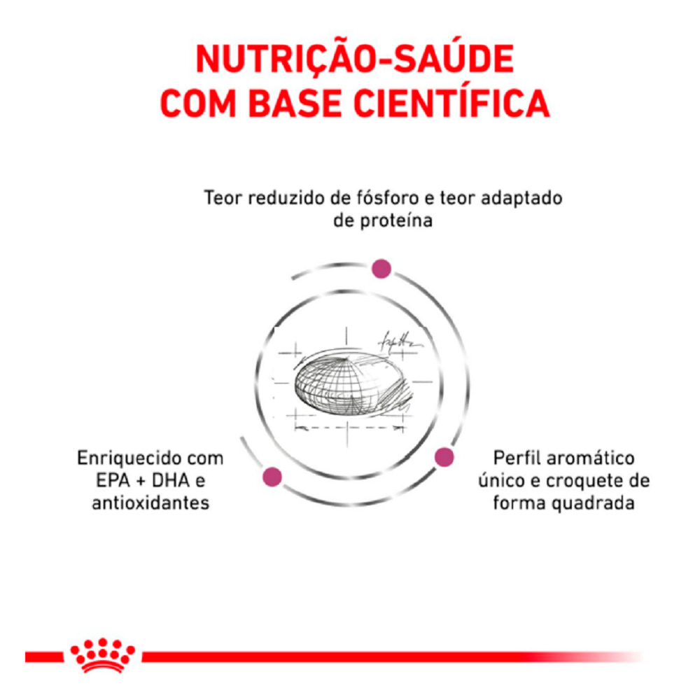 – Indicada para cães;- Formulado com baixo teor de fósforo e teor moderado de proteína de alta qualidade para apoiar a função renal;- Conteúdo energético adaptado para reduzir o volume da refeição e ajudar a compensar a diminuição do apetite;- Um perfil aromático específico com formato de croquete dedicado para ajudar a estimular o apetite do cão;- Disponível em embalagem de 2 kg e 7,5 kg.