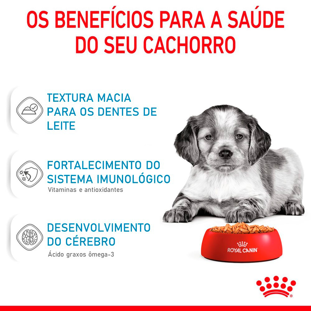 – Indicado para cães filhotes porte médio;- Sem adição de conservantes, aromas e corantes artificiais;- Textura macia para os dentes de leite: pedaços de tamanho, textura e sabor atrativos para cães;- Fortalecimento do sistema imunológico: apoia o desenvolvimento do sistema imunológico saudável do filhote;- Auxilia no desenvolvimento do cérebro;- Enriquecido com ácido graxo ômega-3 (DHA) que é cientificamente comprovado por apoiar o desenvolvimentocerebral do filhote;- Promove o aprendizado desde o início dos treinamentos;- Suporte do microbioma: ajuda a promover um equilíbrio saudável da microbiota intestinal para a saúde digestiva;- Embalagem de 140 g.